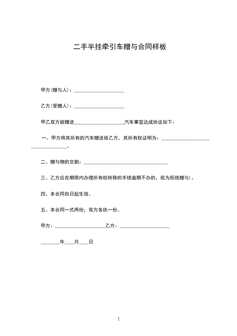 一、甲方将其所有的汽车赠送给乙方,其所有权证明为:___________________________________。