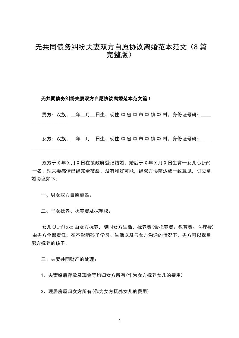 无共同债务纠纷双方自愿离婚协议书范文篇8