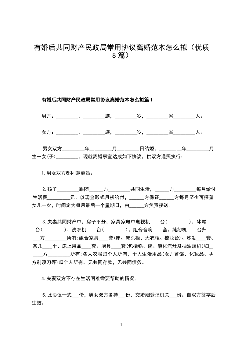有婚后共同财产民政局常用协议离婚范本怎么拟篇5