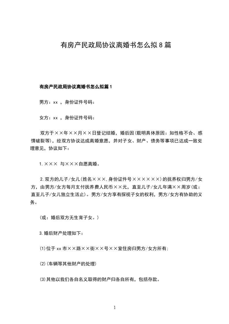 有婚后共同财产民政局常用协议离婚范本怎么拟篇8