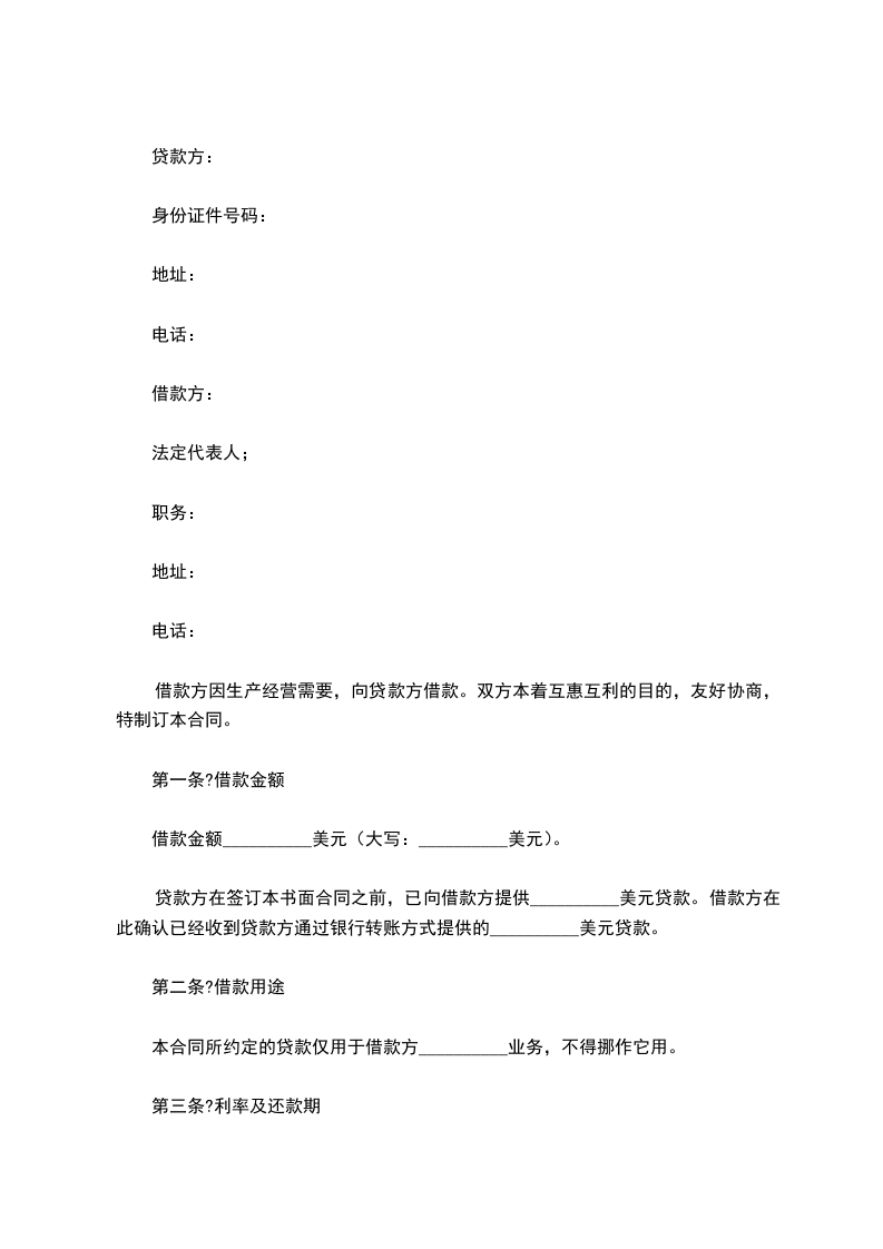 借款金额__________美元(大写:__________美元)。