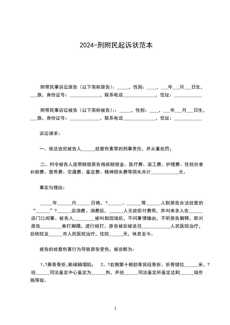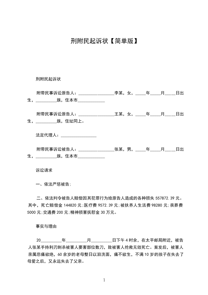 附带民事诉讼原告(以下简称原告):_____,性别:____,___年___月___日生,___族,身份证号:_____________,联系电话______________,住址:____________。
