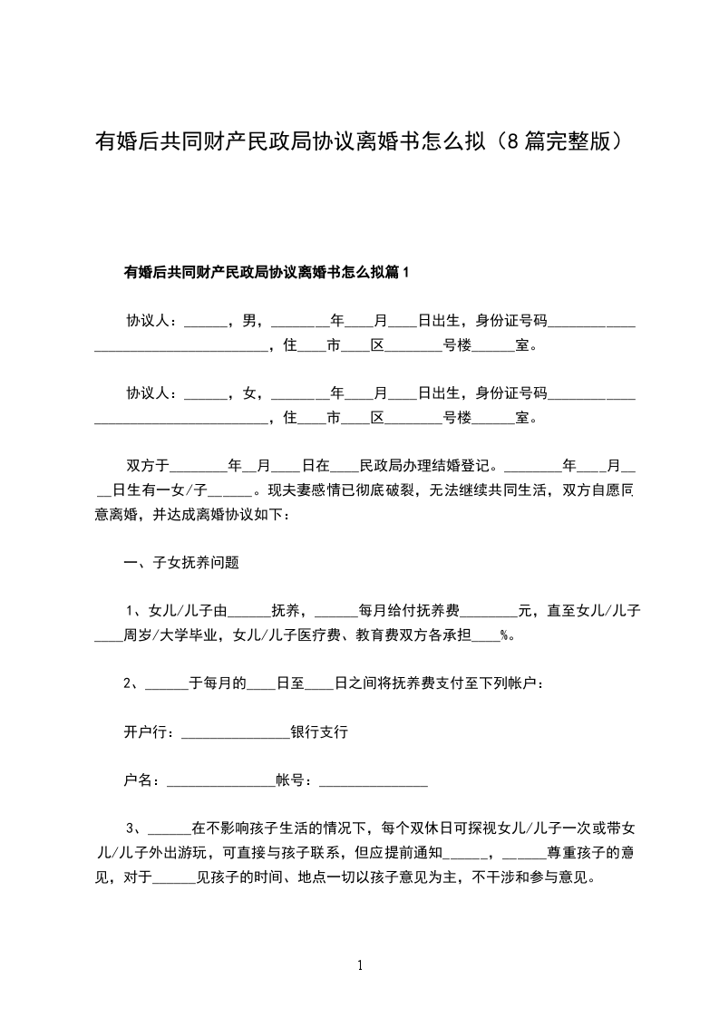 有婚后共同财产民政局离婚协议书怎么拟篇1