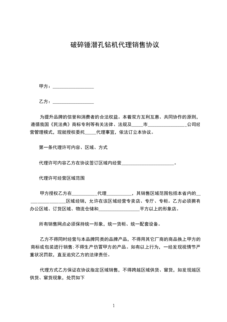 为提升品牌的信誉和消费者的合法权益。本着双方互利互惠、共同协作的原则,遵循我国《民法典》商标专利等有关法律、法规及_____市_________________公司经营管理模式,现就授权委托_____代理事宜,依法订立本协议。