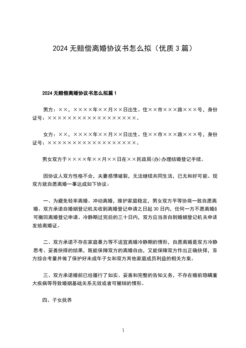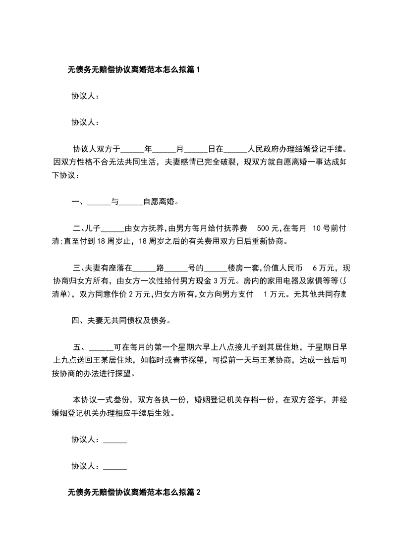 无共同债权债务无赔偿协议离婚书怎么拟篇2