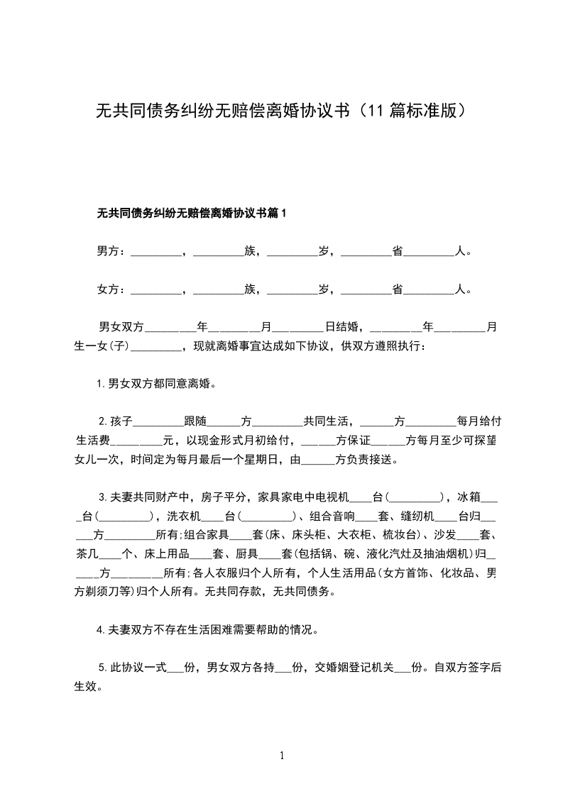 无共同债务纠纷无赔偿离婚协议书模板篇11