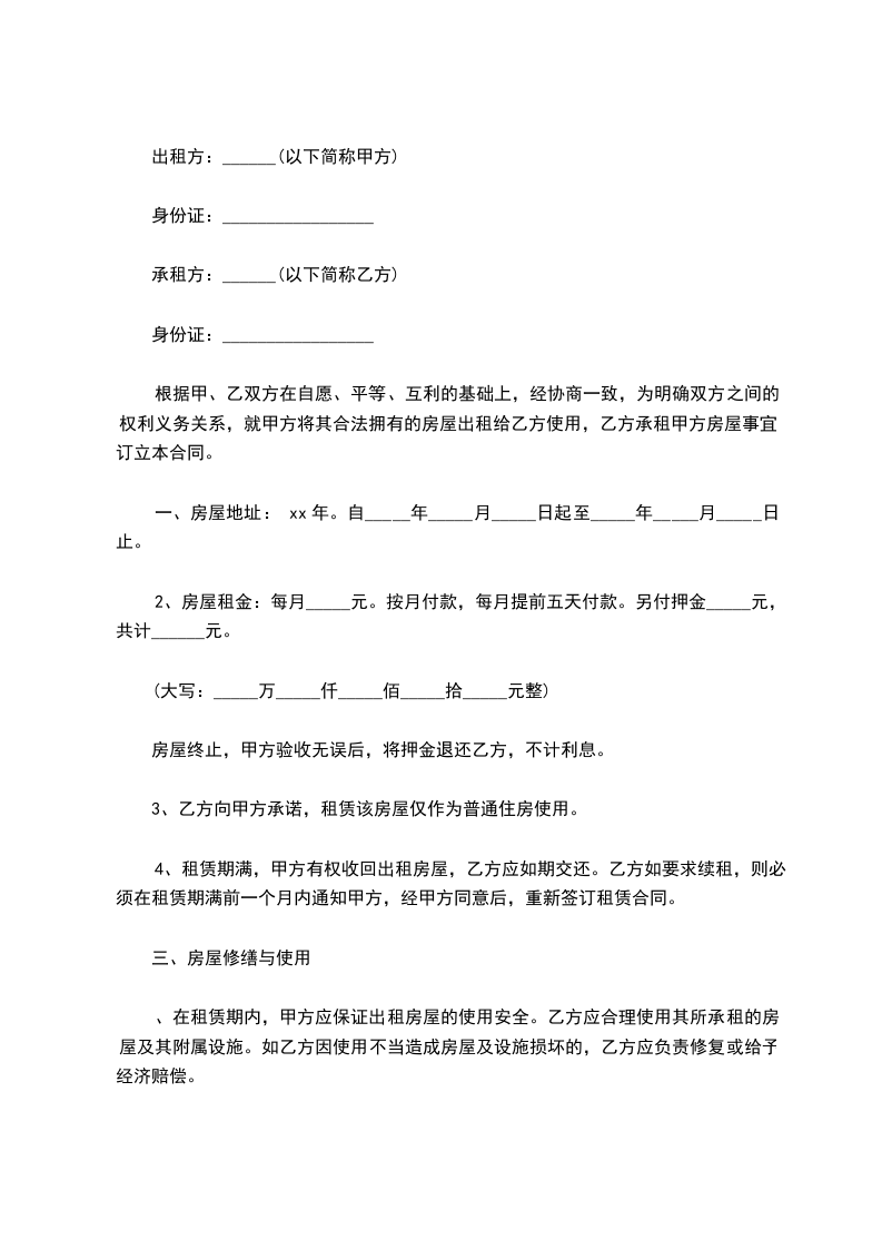 租赁期满后,本合同即终止,届时乙方须将房屋退还甲方。如乙方要求继续租赁,则须提前____个月书面向甲方提出,甲方在合同期满前____个月内向乙方正式书面答复,如同意继续租赁,则续签租赁合同。