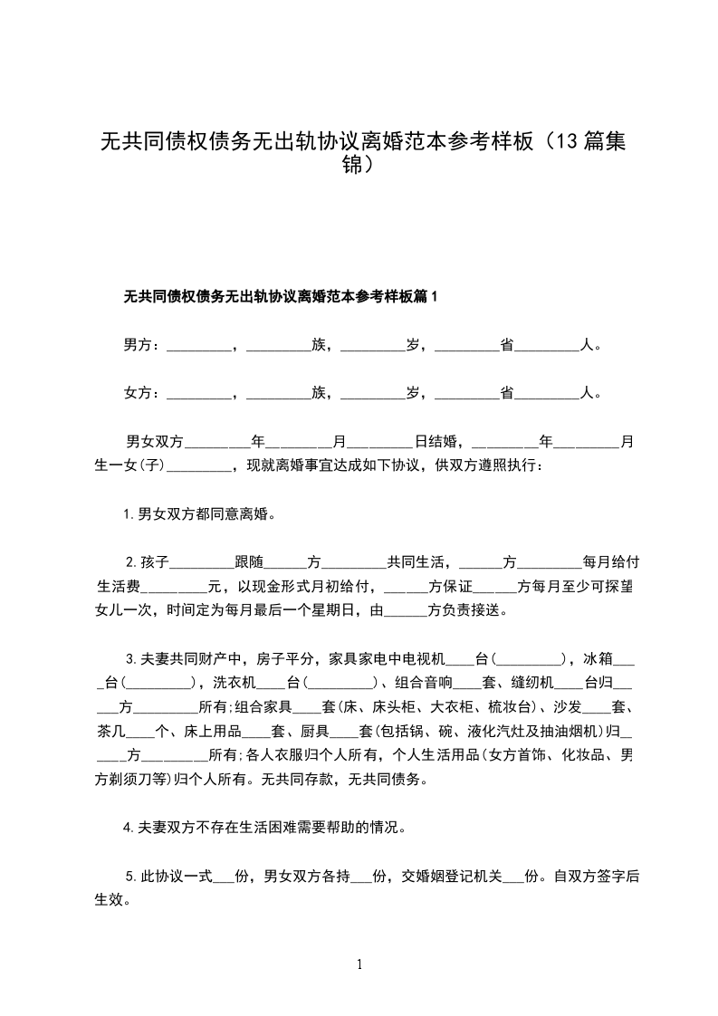 无共同债权债务无出轨协议离婚范本参考样板篇11