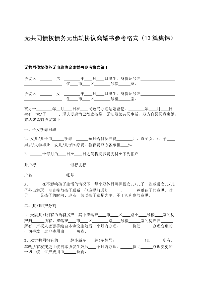无共同债权债务无出轨协议离婚范本参考样板篇13