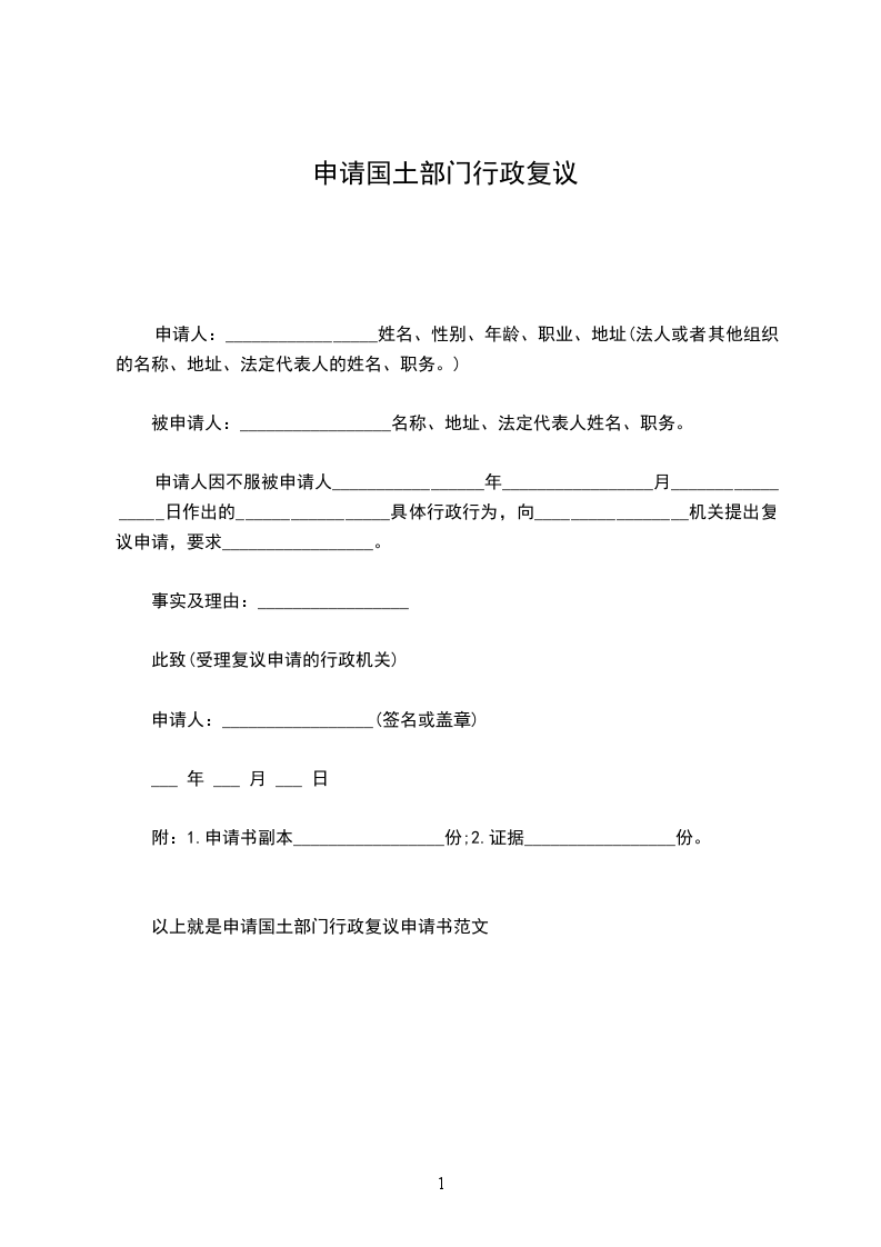 以上就是申请国土部门行政复议申请书范文