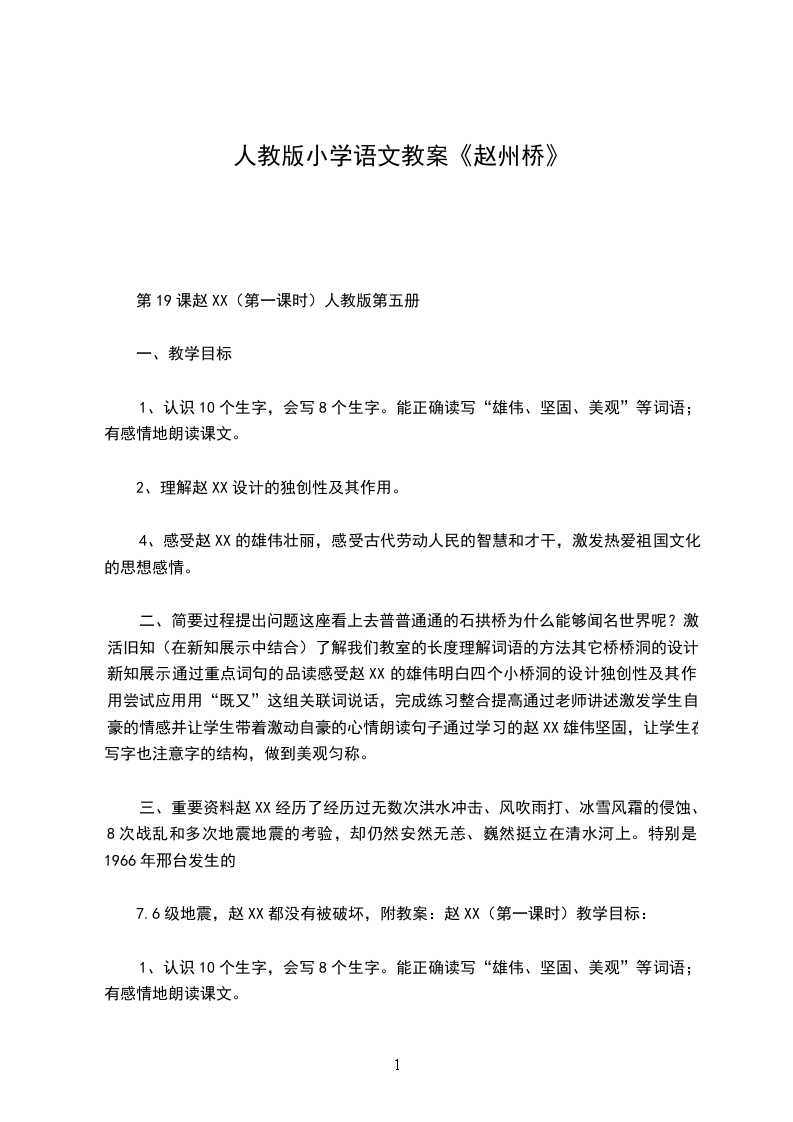 3、知道赵XX雄伟、坚固、美观的特点,学会找关键句知道课文的主要内容。