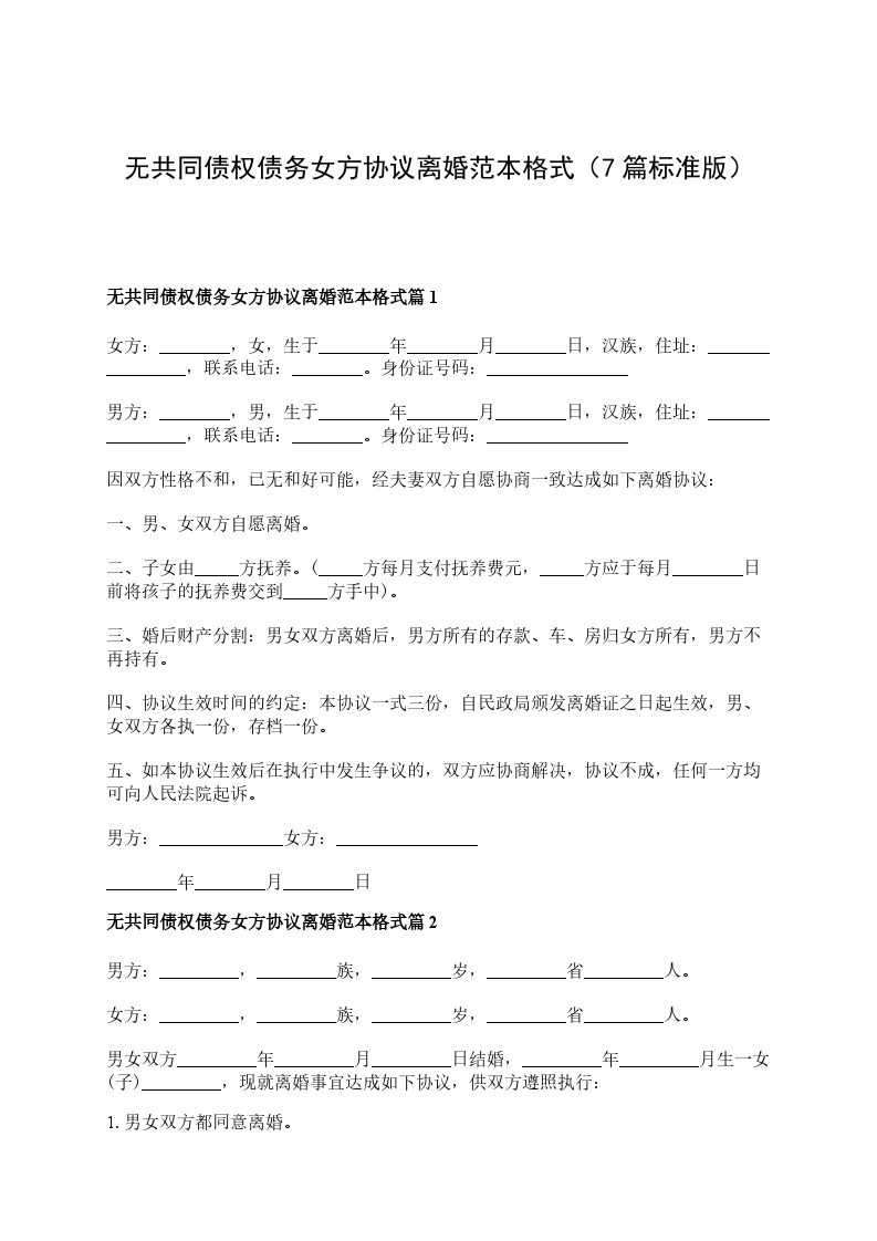 本协议一式三份。男、女双方各执一份,婚姻登记机关存档一份,自婚姻登记机颁发《离婚证》之日起生效。