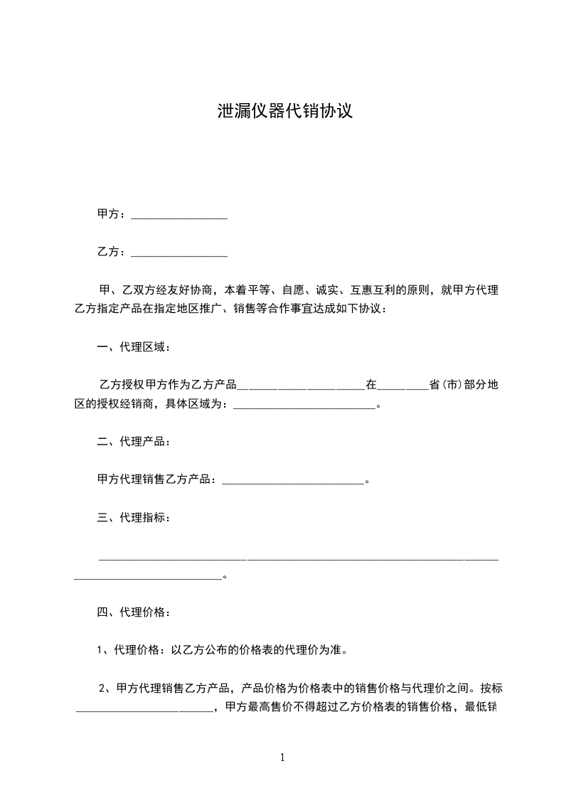 泄漏仪器代销协议