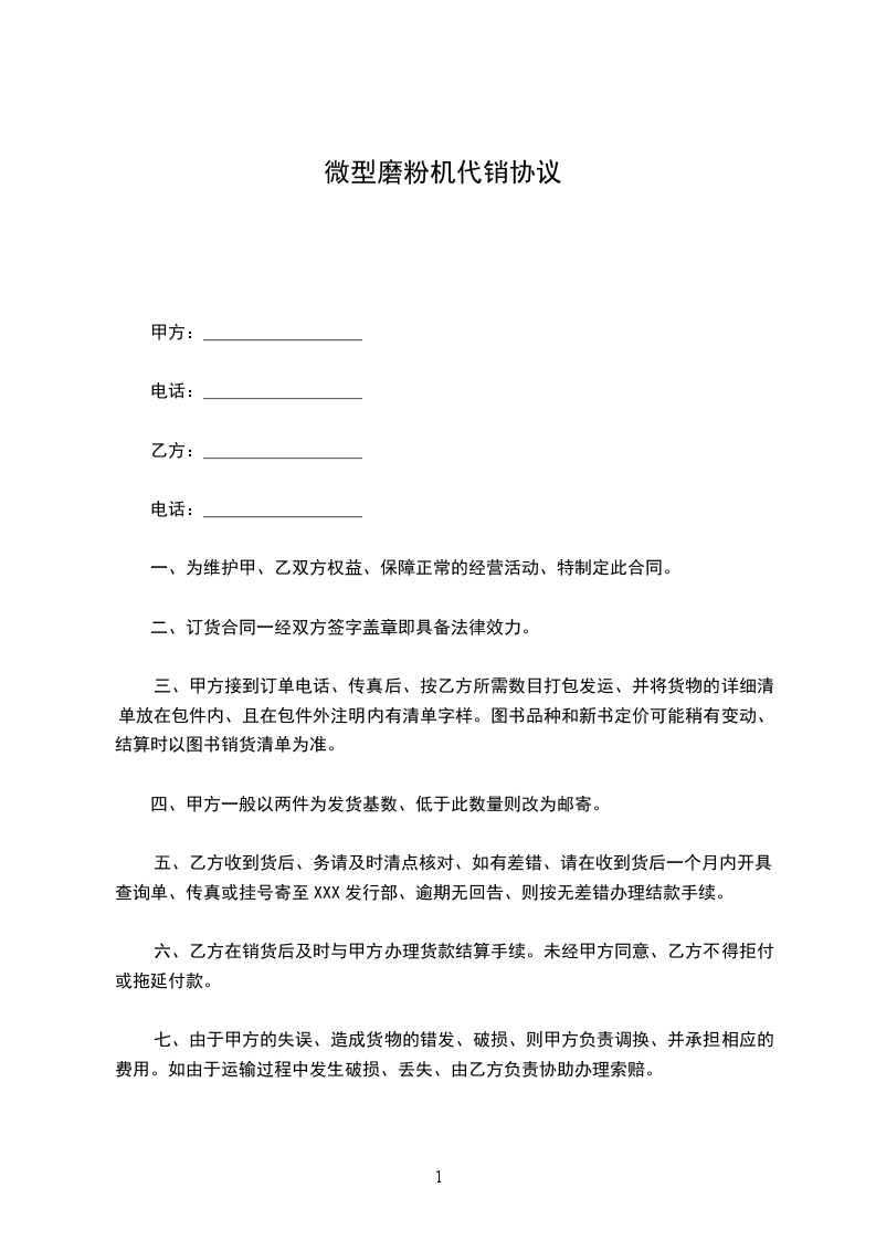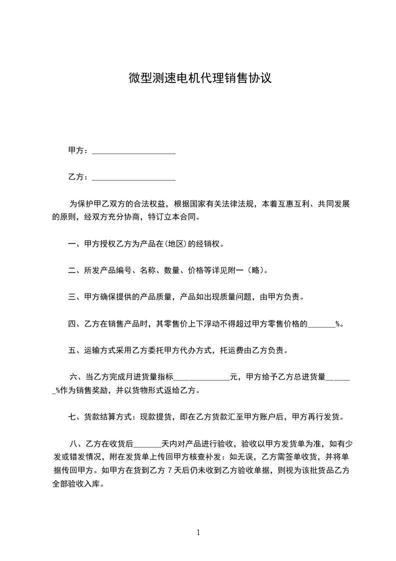 同步电机微型代理销售协议