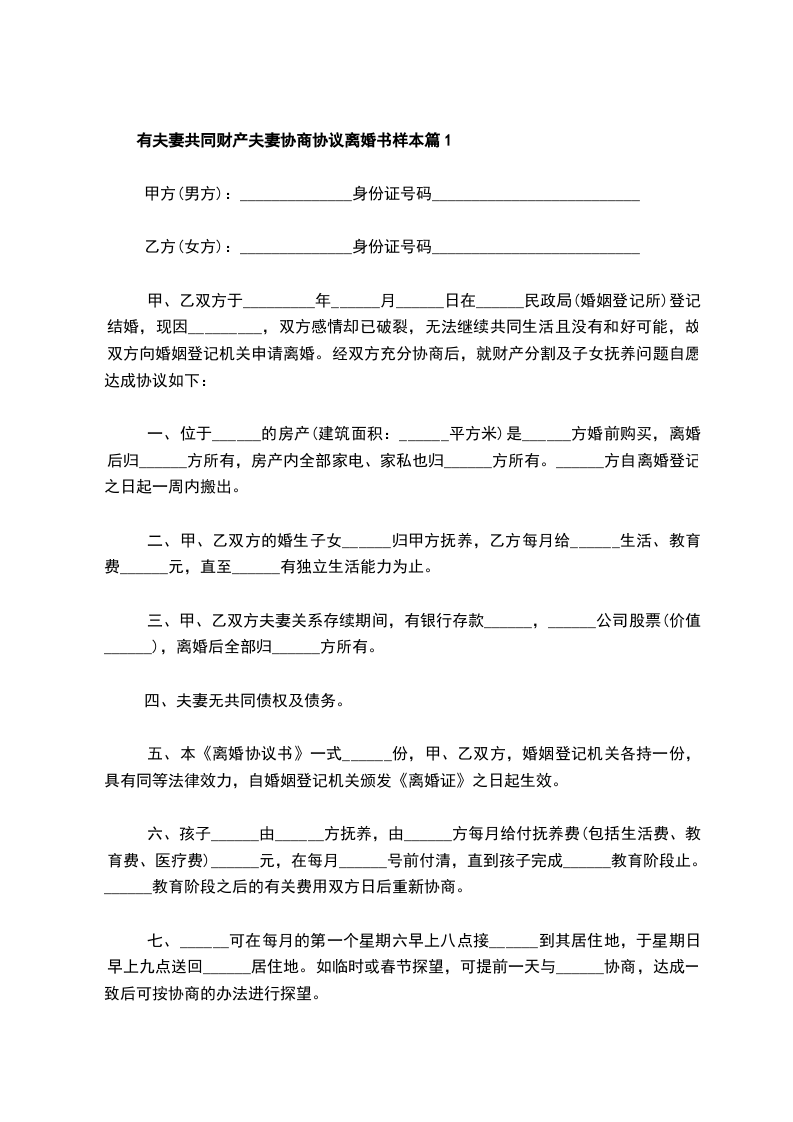 有夫妻共同财产夫妻协商协议离婚书范文篇3