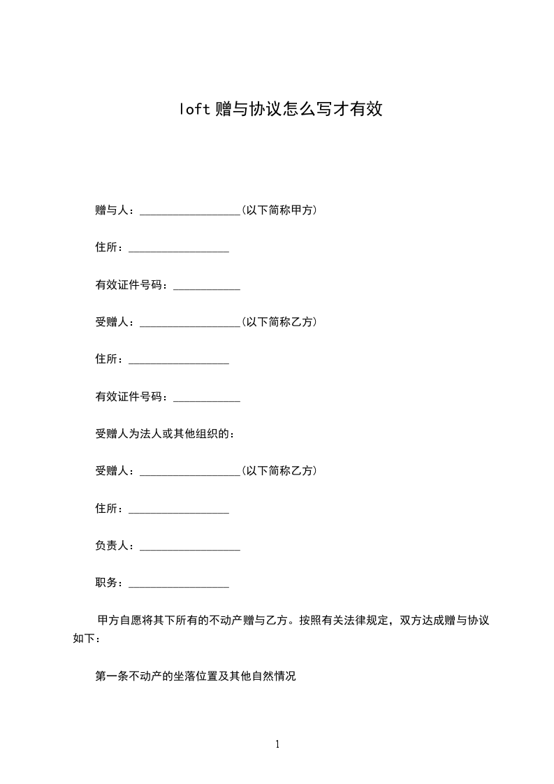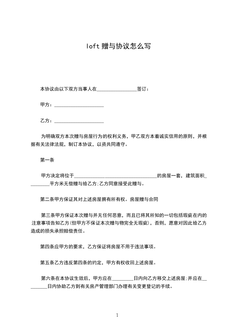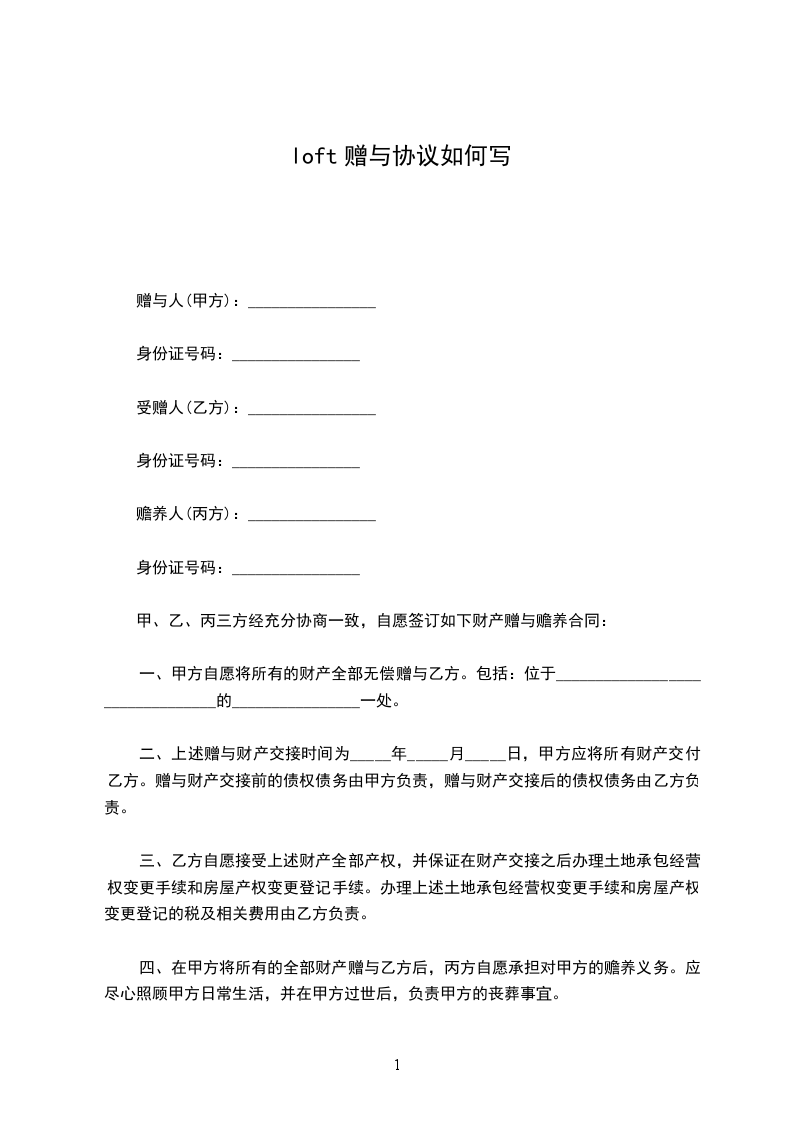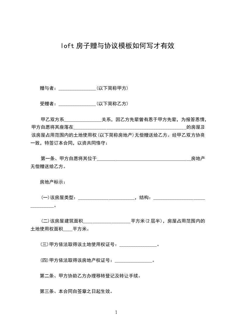 赠与人:__________________(以下简称甲方)