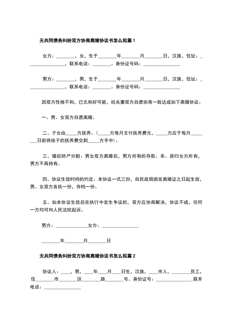 无共同债务纠纷双方协商协议离婚书样本篇9