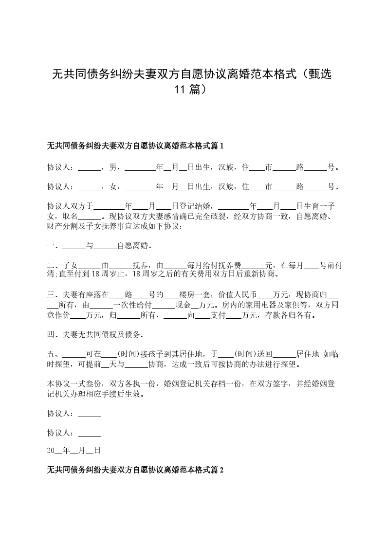 无共同债务纠纷双方协商协议离婚书样本篇11