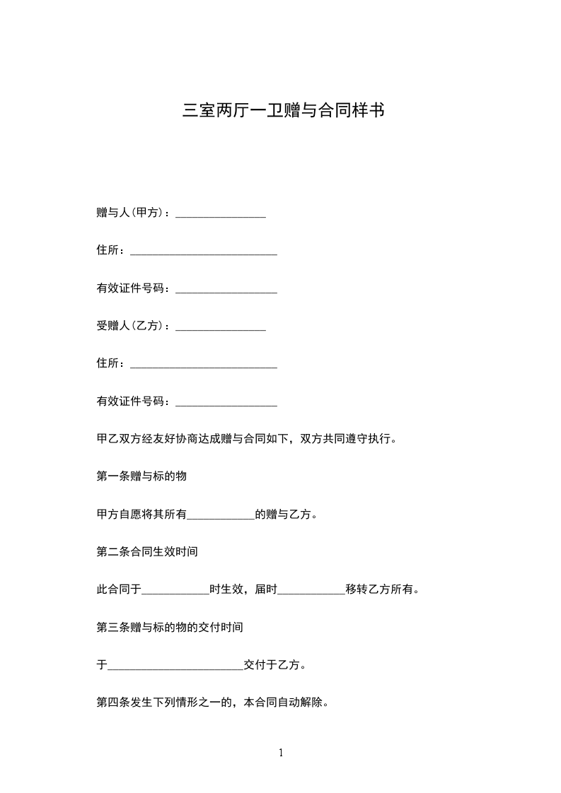 甲方(赠与人):____________,男,_____族,住址:____________________,身份证号:____________________。