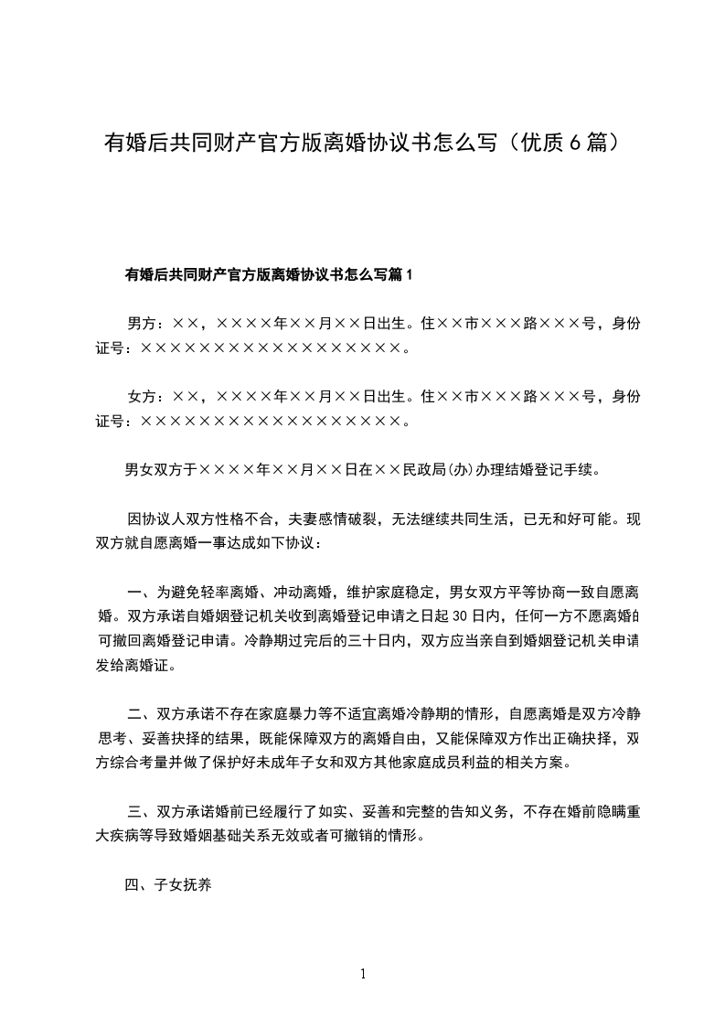 本协议以上载明的财产已经包含了全部夫妻婚姻关系存续期间的财产,并对财产权属予以确认。