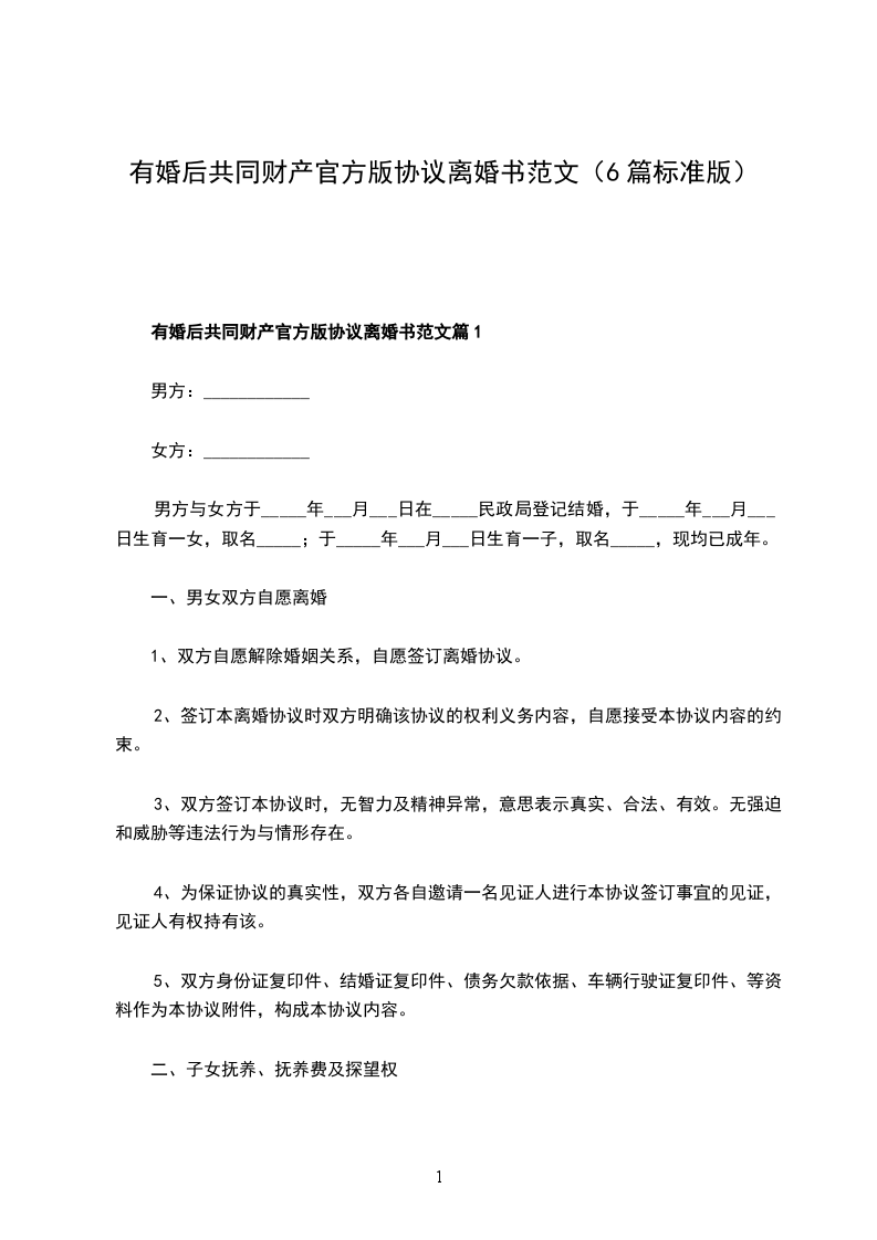 1、【存款】双方婚姻关系存续期间,目前共有存款____元,其中男方账户____元,女方账户____元,双方同意,____方在本协议签订之日起3日内给付____方____元。