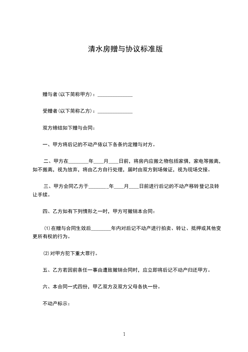一、甲方将后记的不动产依以下各条约定赠与对方。