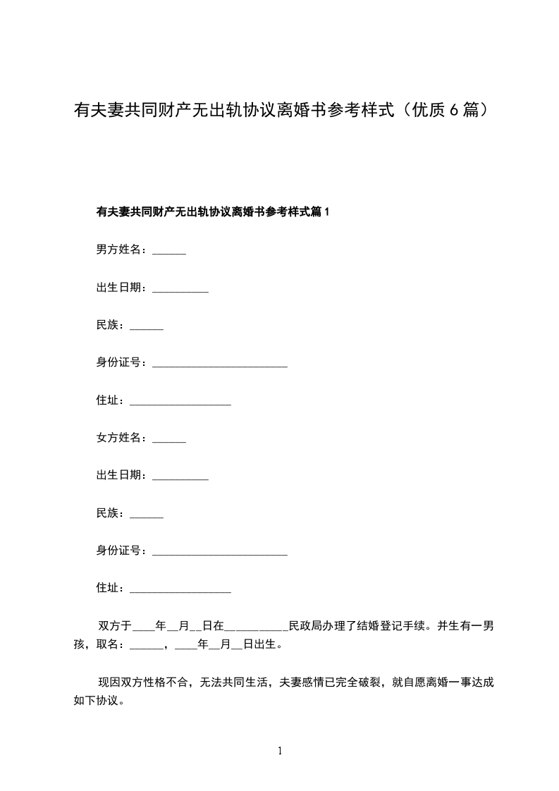 有夫妻共同财产无出轨协议离婚书参考样式篇6
