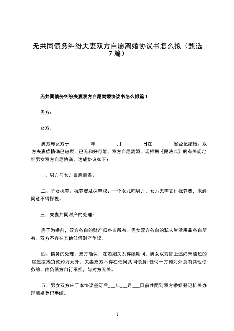 无共同债务夫妻双方自愿离婚协议怎么拟篇7