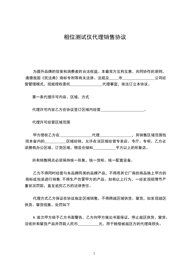 相位测试仪代理销售协议