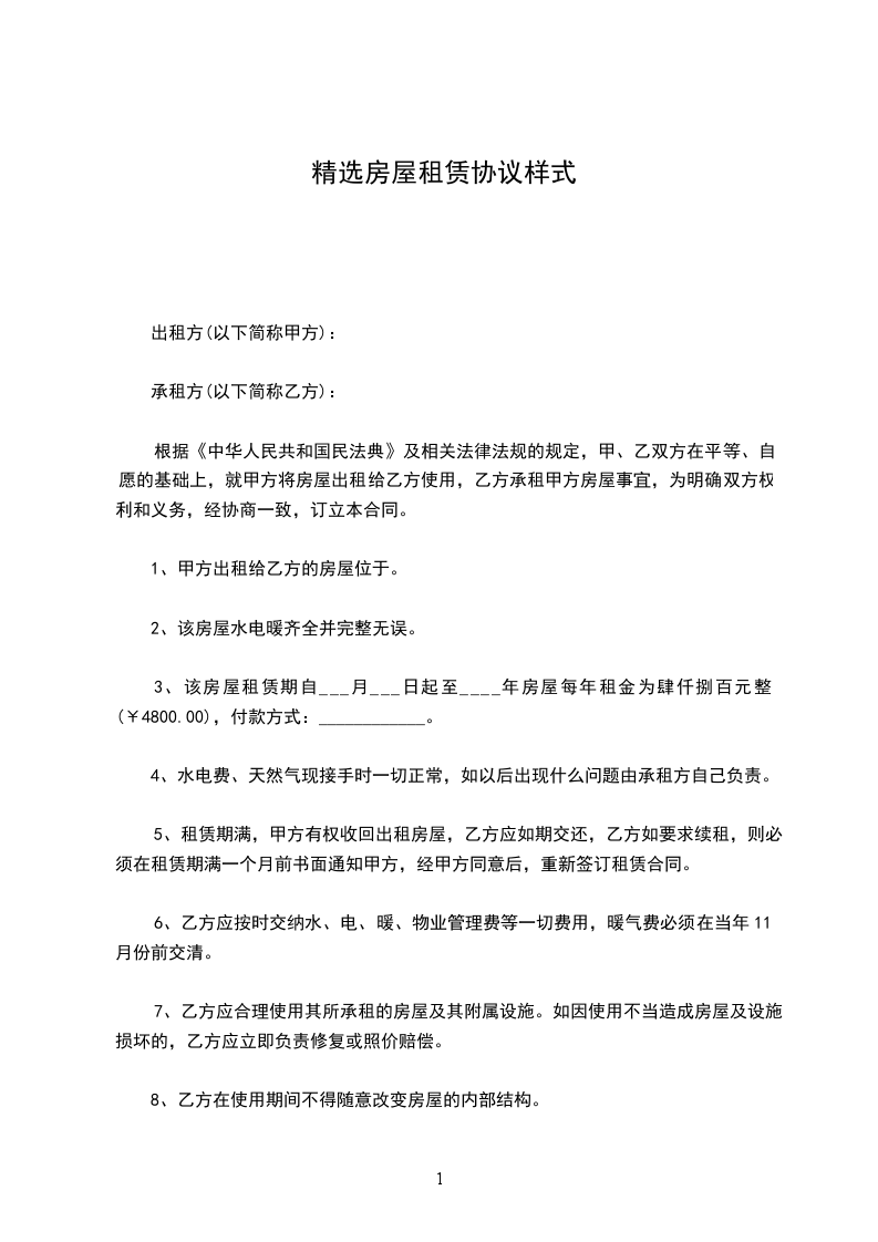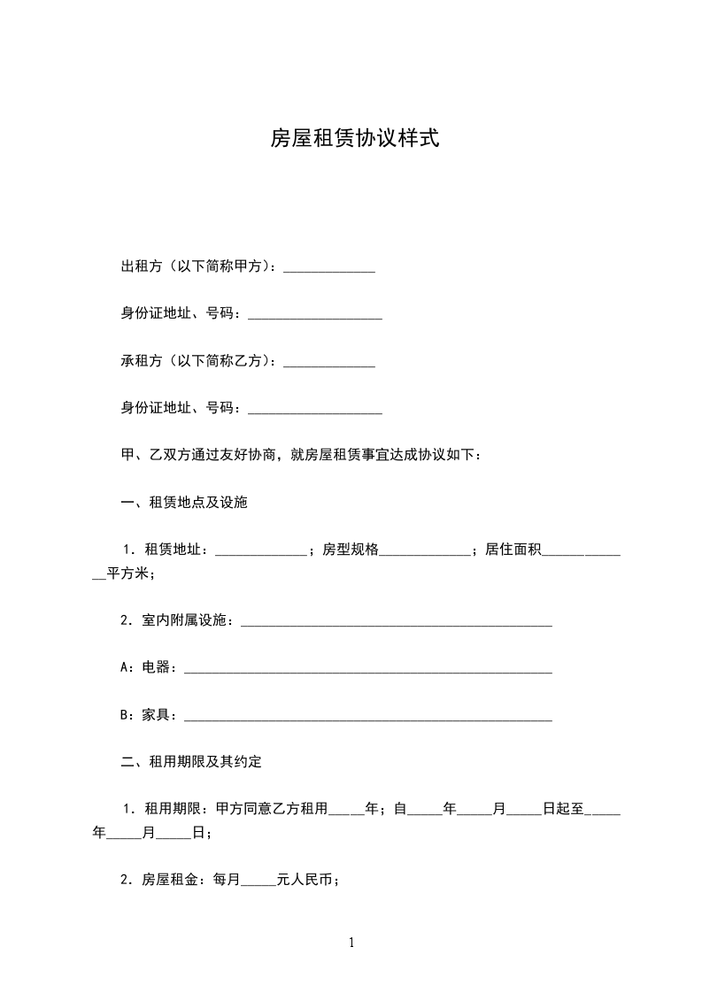 1.租赁地址:_____________;房型规格_____________;居住面积_____________平方米;