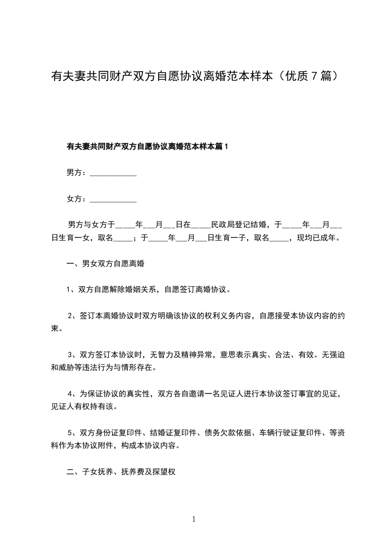 一、男女双方自愿离婚。