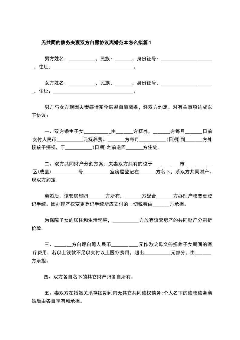 无共同的债务夫妻双方自愿协议离婚范本怎么拟篇10