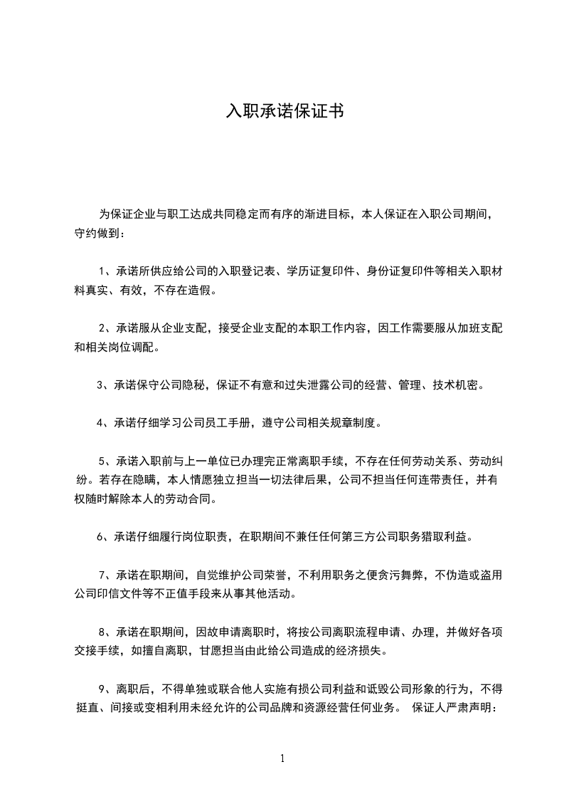 为保证企业与职工达成共同稳定而有序的渐进目标,本人保证在入职公司期间,守约做到: