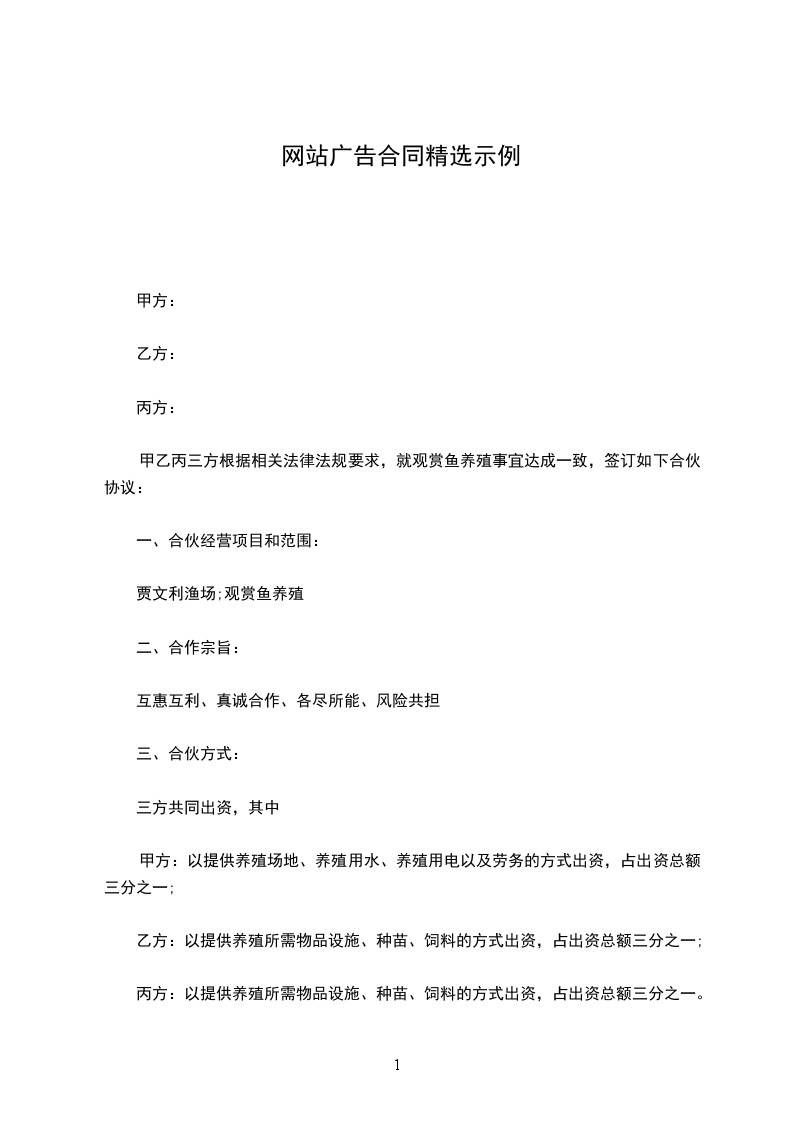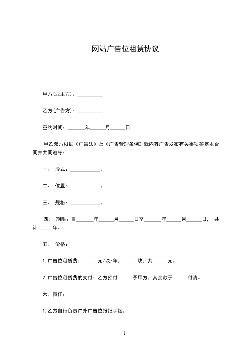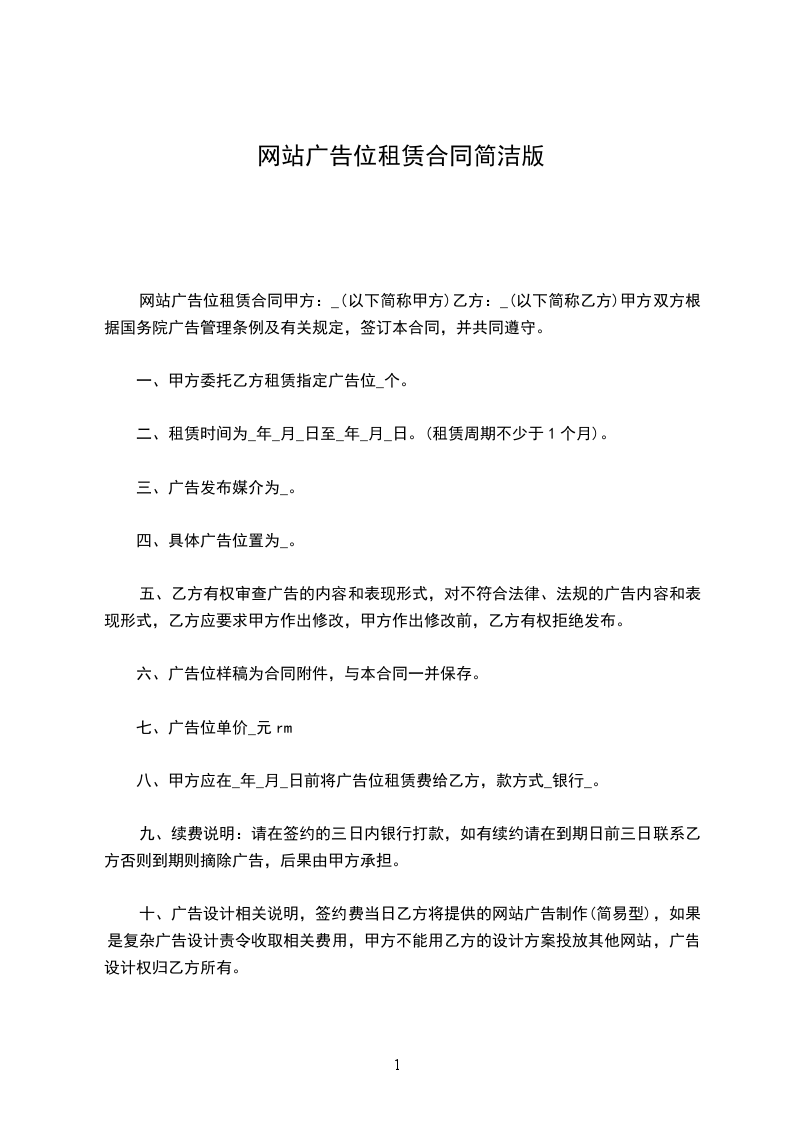1、甲方负责乙方广告的网站发布,并在到期前及时通知乙方是否继续合作。