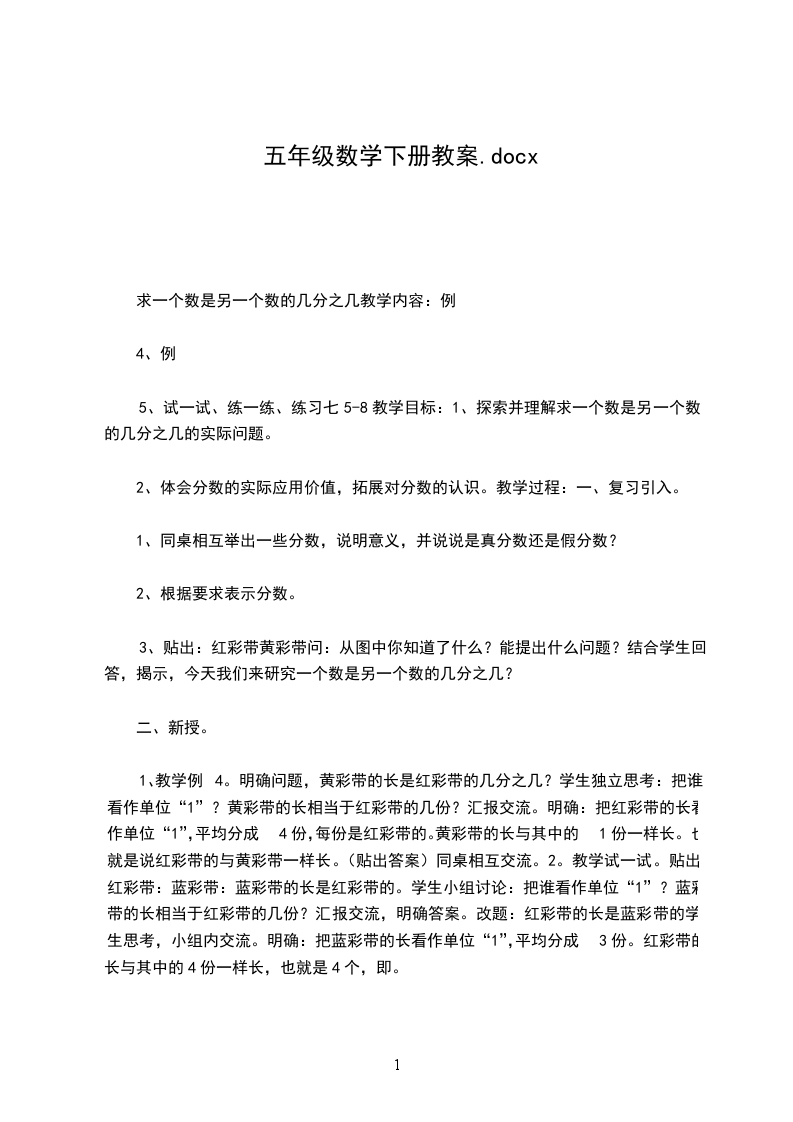 3.分数与除法的关系,单位的转化。 这里有个最简假分数