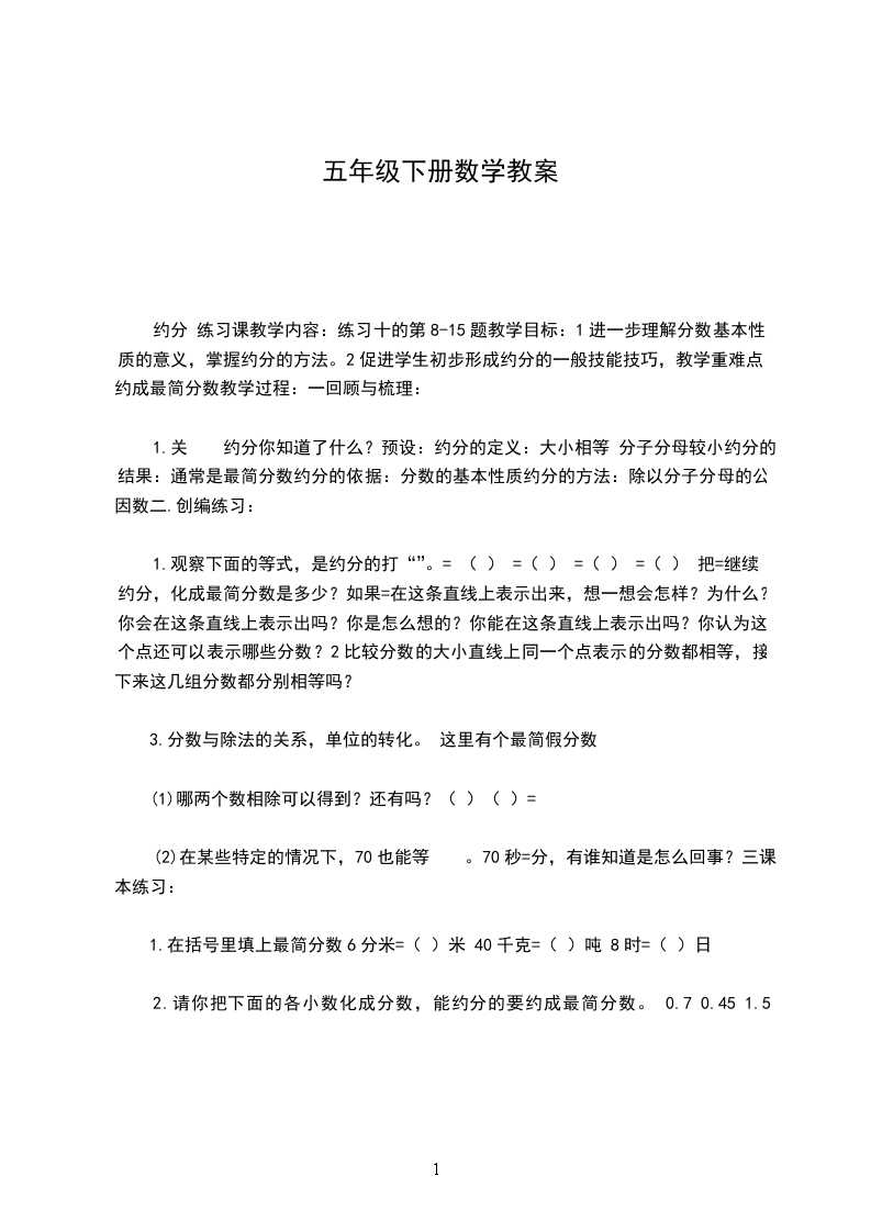 约分 练习课教学内容:练习十的第8-15题教学目标:1进一步理解分数基本性质的意义,掌握约分的方法。2促进学生初步形成约分的一般技能技巧,教学重难点: 约成最简分数教学过程:一回顾与梳理: