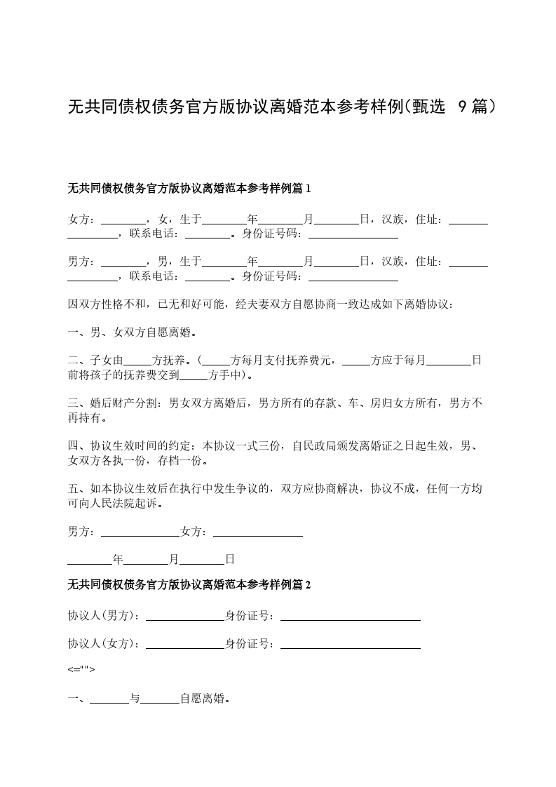 1、本协议一式三份,自婚姻登记机关颁发《离婚证》之日起生效,男、女双方各执一份,婚姻登记机关存档一份。
