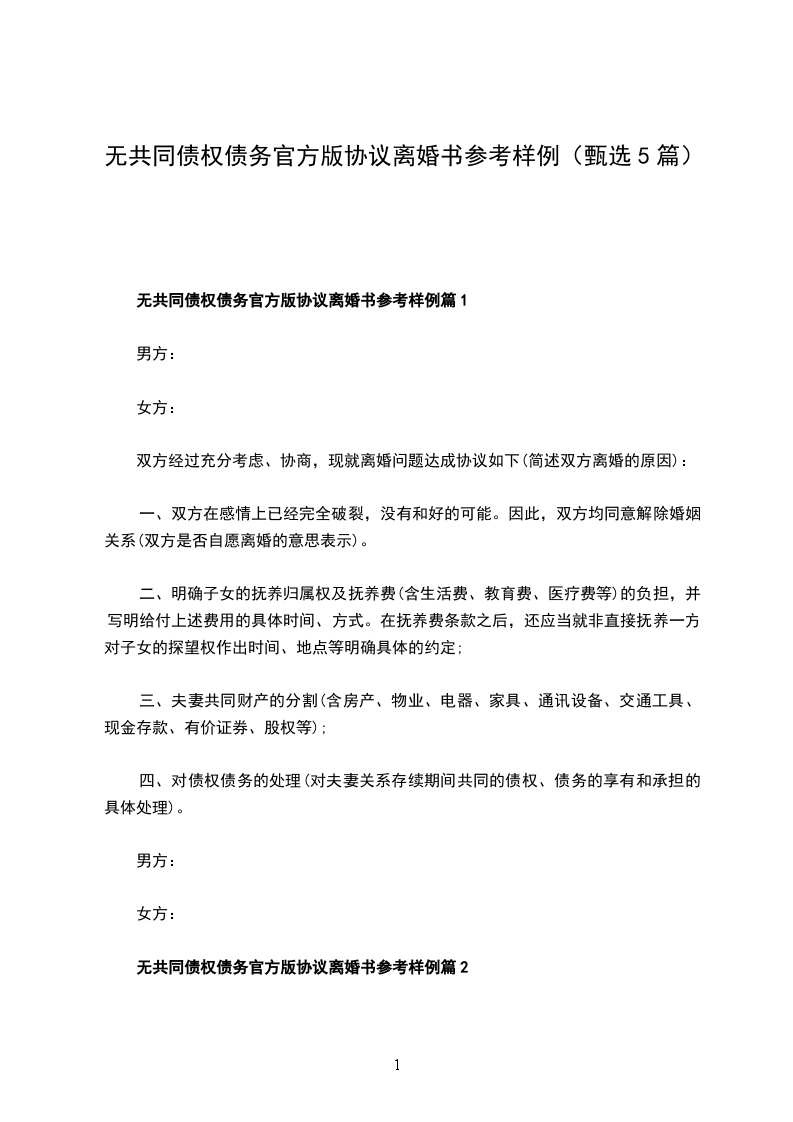 (夫妻婚姻关系存续期间,男女双方无共同债权债务。)