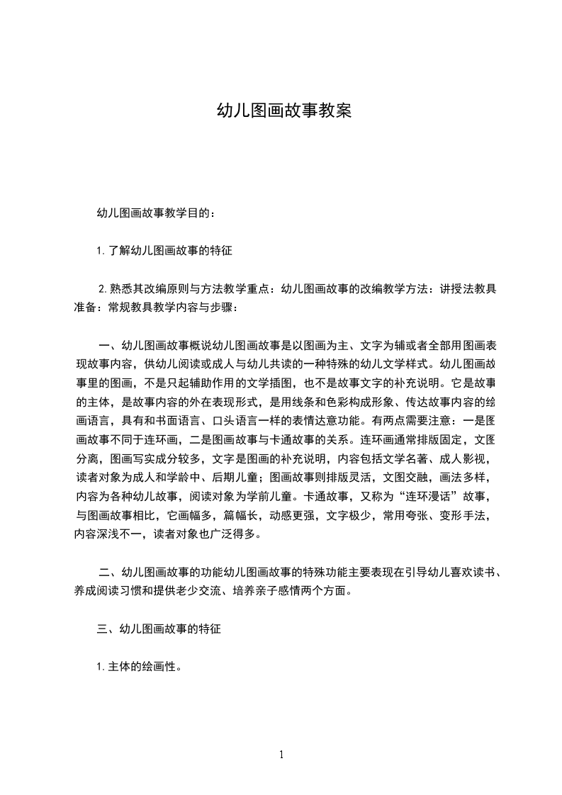 1.了解幼儿图画故事的特征