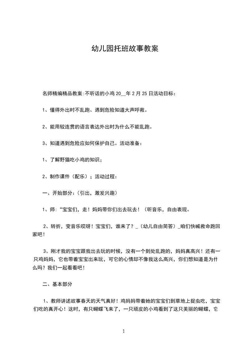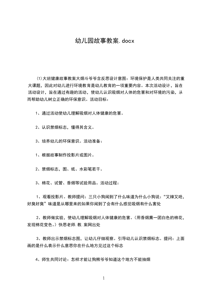 幼儿图画故事教学目的: