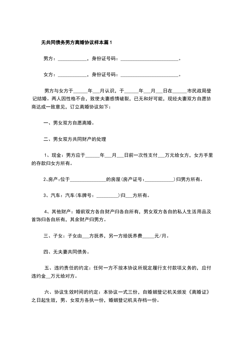 (1)男女双方确认在婚姻关系存续期间无共同债务。