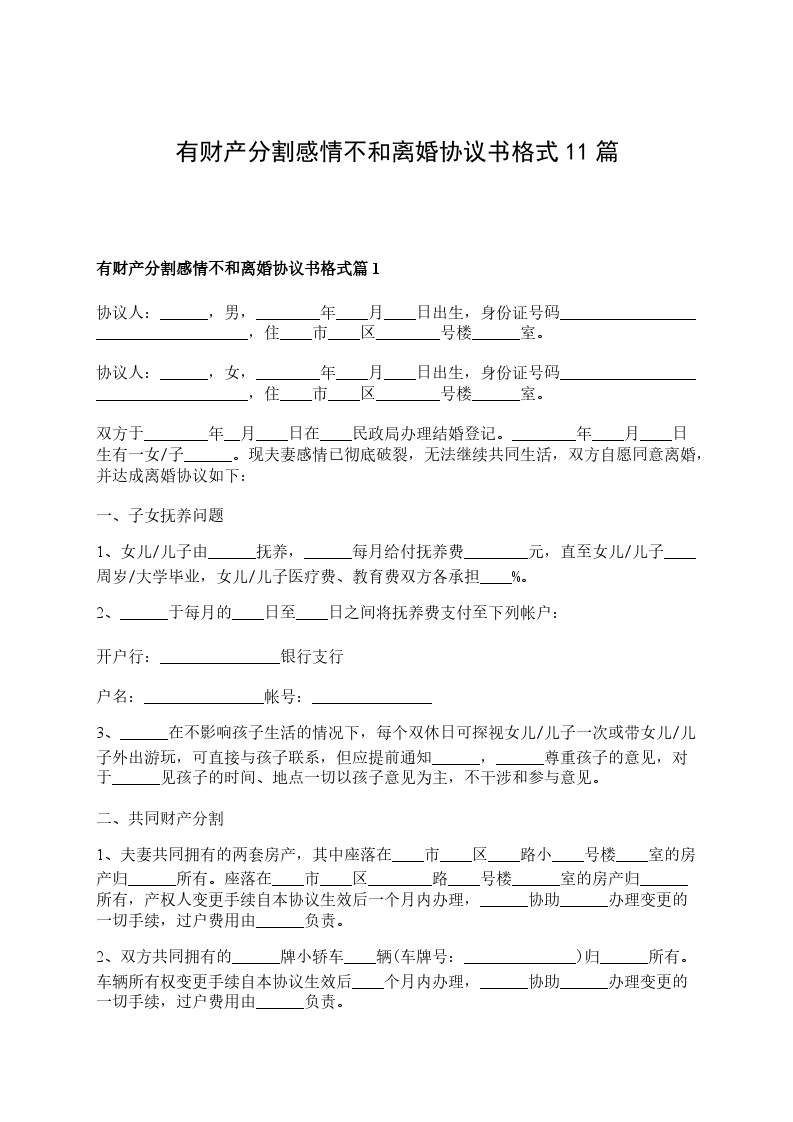 有财产分割感情不和协议离婚范本如何写篇11