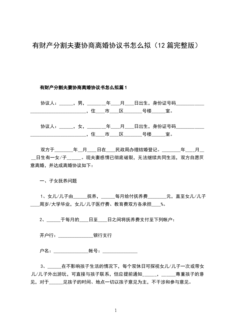 协议人双方于________年____月____日登记结婚,________年____月____日生育一子女,取名______。现协议双方夫妻感情确已完全破裂,经双方协商一致,自愿离婚、财产分割及子女抚养事宜达成如下协议: