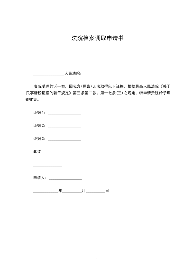 贵院受理的诉一案,因我方(原告)无法取得以下证据。根据最高人民法院《关于民事诉讼证据的若干规定》第三条第二款、第十七条(三)之规定,特申请贵院给予调查收集。