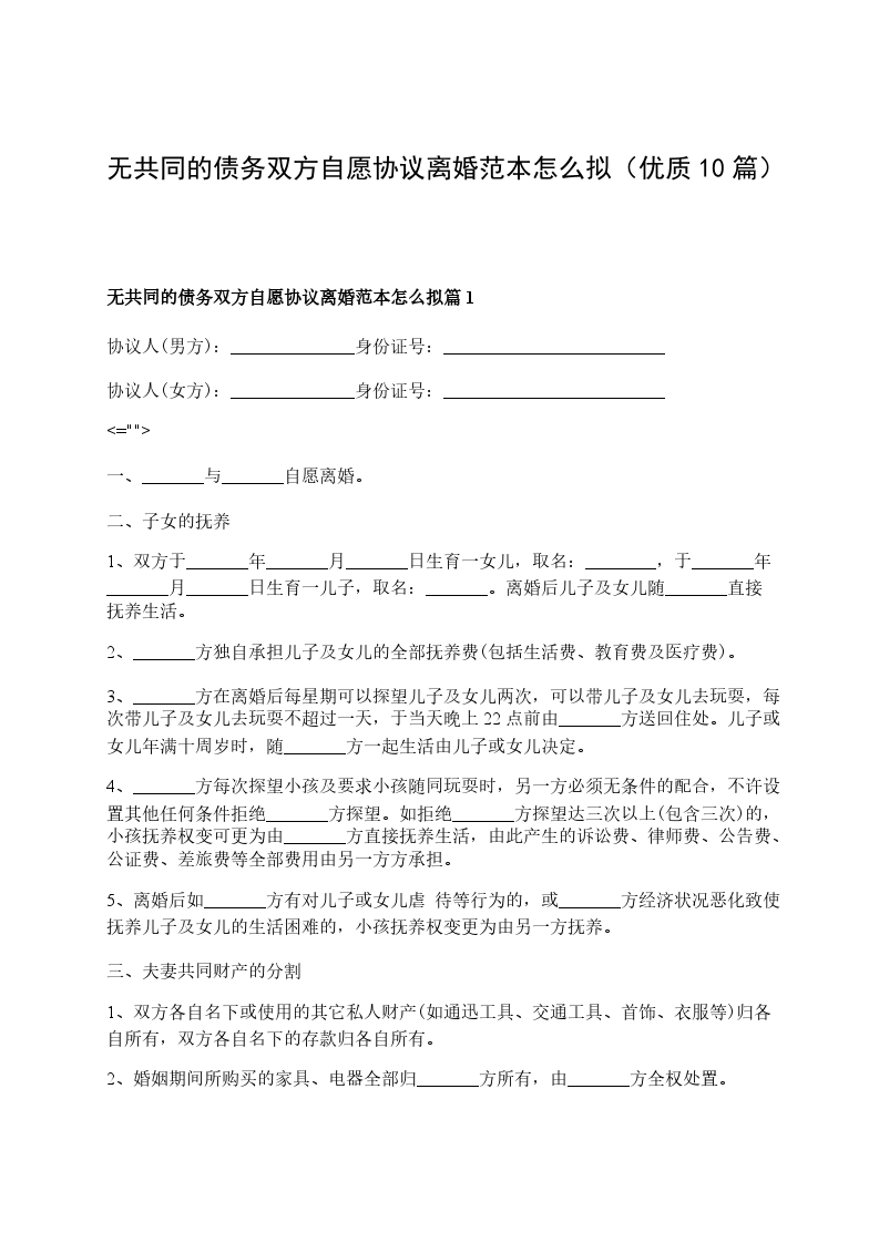 无共同债权债务自愿协议离婚范本怎么拟篇10