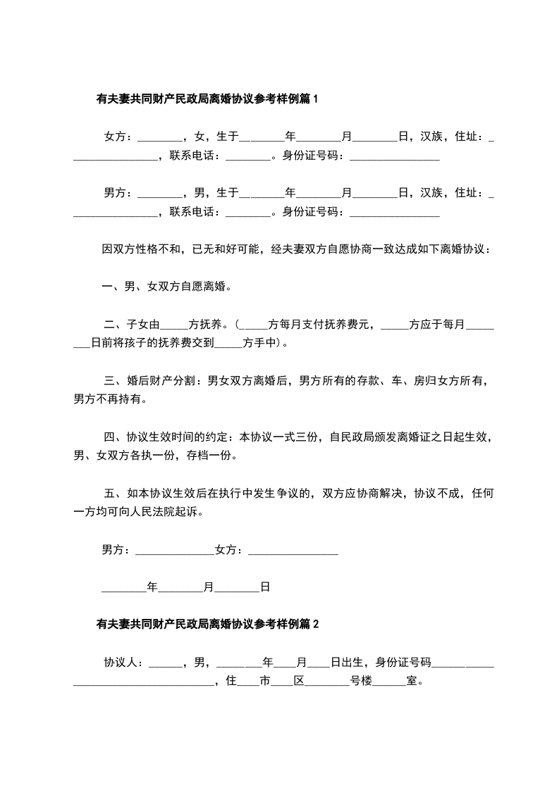 有夫妻共同财产民政局离婚协议书模板篇11