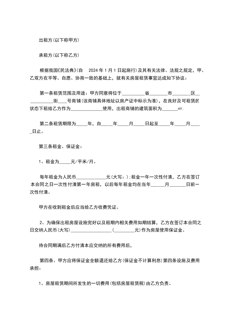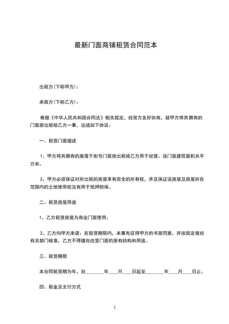 根据《中华人民共和国民法典》相关规定,经双方友好协商,就甲方将其拥有的门面房出租给乙方一事,达成如下协议:
