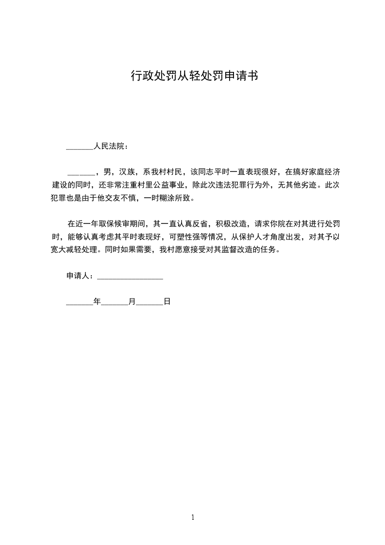在近一年取保候审期间,其一直认真反省,积极改造,请求你院在对其进行处罚时,能够认真考虑其平时表现好,可塑性强等情况,从保护人才角度出发,对其予以宽大减轻处理。同时如果需要,我村愿意接受对其监督改造的任务。