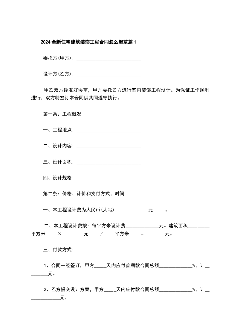2024全新住宅建筑装饰工程合同怎么起草篇1