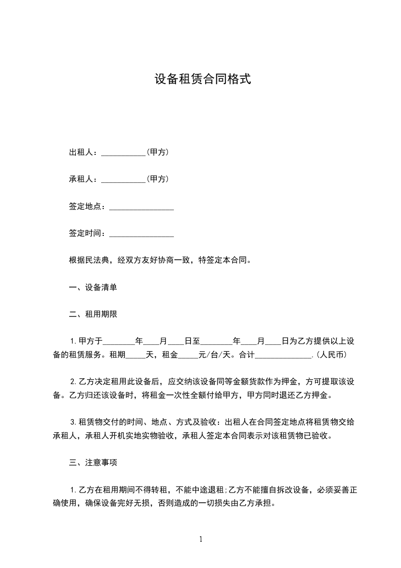 1.甲方于________年____月____日至________年____月____日为乙方提供以上设备的租赁服务。租期_____天,租金_____元/台/天。合计______________.(人民币)